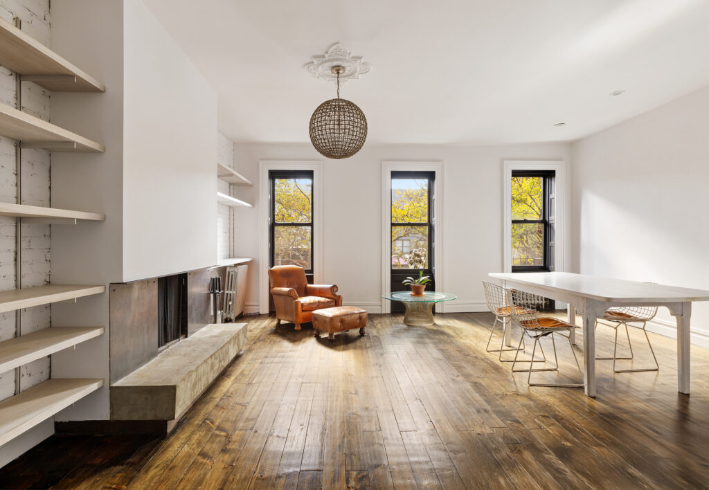 Step inside and discover a thoughtful mix of historic details and modern design. Exposed brick, wide plank floors, and original shutters create a warm ambiance, while clean, contemporary finishes elevate the space. The south-facing living room, anchored by a dramatic working wood-burning fireplace with industrial finishes, is wonderful for both quiet evenings and entertaining.